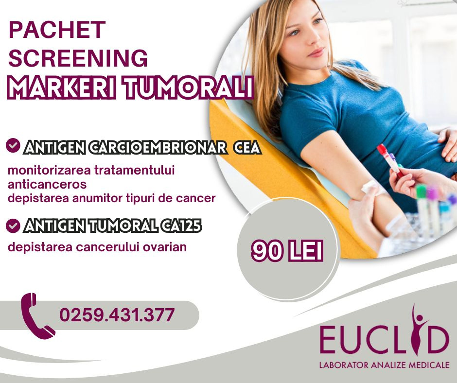 Pachetul de screening pentru markeri endocrini, adresat femeilor. Acesta  include antigenul carcioembrionar CEA, pentru depistarea anumitor tipuri de cancer și antigenul tumoral CA125, care depistează cancerul ovarian și este la un preț special de 90 de lei, redus de la 145 de lei.